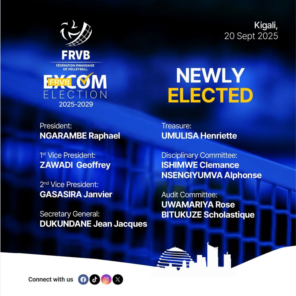 Inama rusange y’abanyamuryango ba Volleyball mu Rwanda yariyo gutora abayobozi bashya b’ishyirahamwe ry’umukino wa Volleyball mu Rwanda FRVB nyumva ya manda y’imyaka 4 ishize nkuko biteganywa n’amategeko agenga iri shyirahamwe rya volleyball mu Rwanda (FRVB).